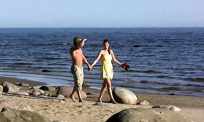 mature loves stepson on public beach