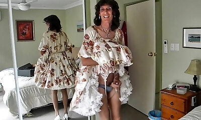 Crossdresser michelle playing in floral frock