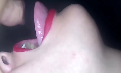 Russian woman give blowjob to her beau + big cumshot and huge facial