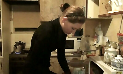 Worn out housewife gives a fast head to her husband