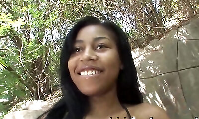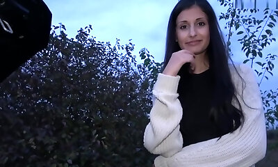 Crazy brunette teen luvs to be poked outdoors in doggy pose
