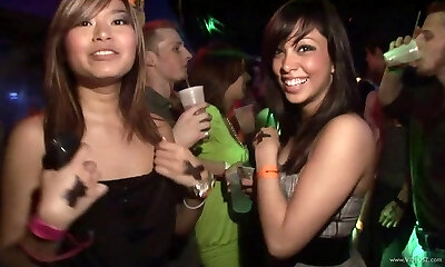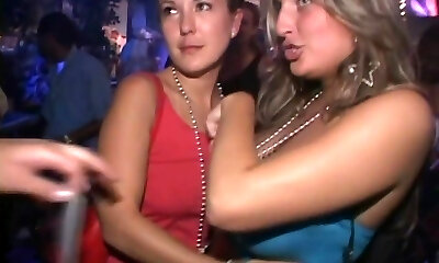 Happy gals in short skirts never mind sucking and railing dicks in the club