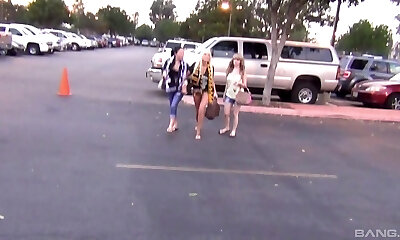 Slutty damsels Mia L and Megan Venturi have wild group fuckfest party