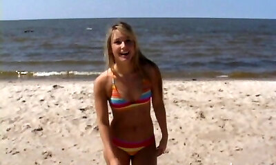 Slender Russian teen Galina Markova does the splits and shows bald pussy