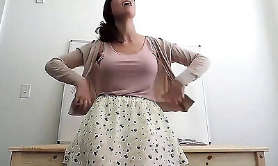 Frolic floozy with smallish ninnies Jasmine Lau takes off her clothes and dances