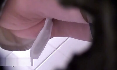 Pallid skin booty of a stranger girl filmed from underneath in the toilet