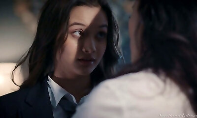 Hot like fire sexy office lezzy Alex De La Flor seduces charming babe for sex