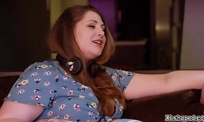 Obese chick Shannon fucking with a mischievous neighbor on the couch