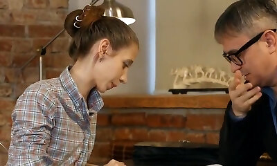 немецкая костлявая девушка-подросток по вызову трахается с пожилым уродливым дедушкой в борделе