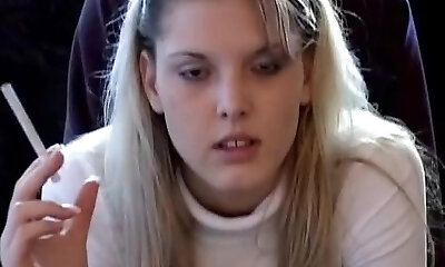 Perfect blonde teen smoking on cam